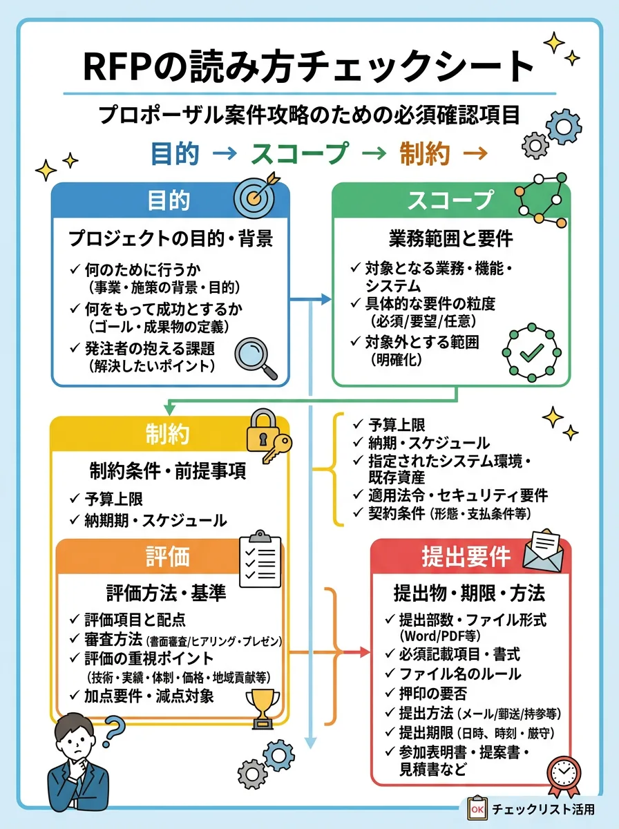 プロポーザル方式の基本|RFP(提案依頼書)の読み方・評価項目・提出書類チェックリスト【初心者向け】
