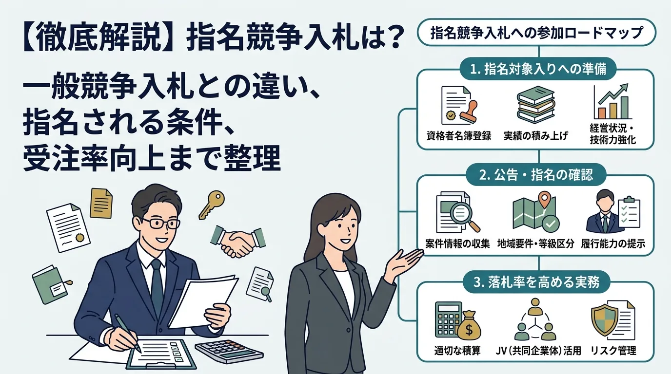 指名競争入札は、仕組みを正しく理解すると、地域要件や格付、実績との相性によっては中小企業にも十分チャンスがある方式です。ここでは制度の基本だけでなく、指名されやすくなる準備、落札率を高める見方、失格や不正リスクを避ける実務まで、現場目線で整理します。